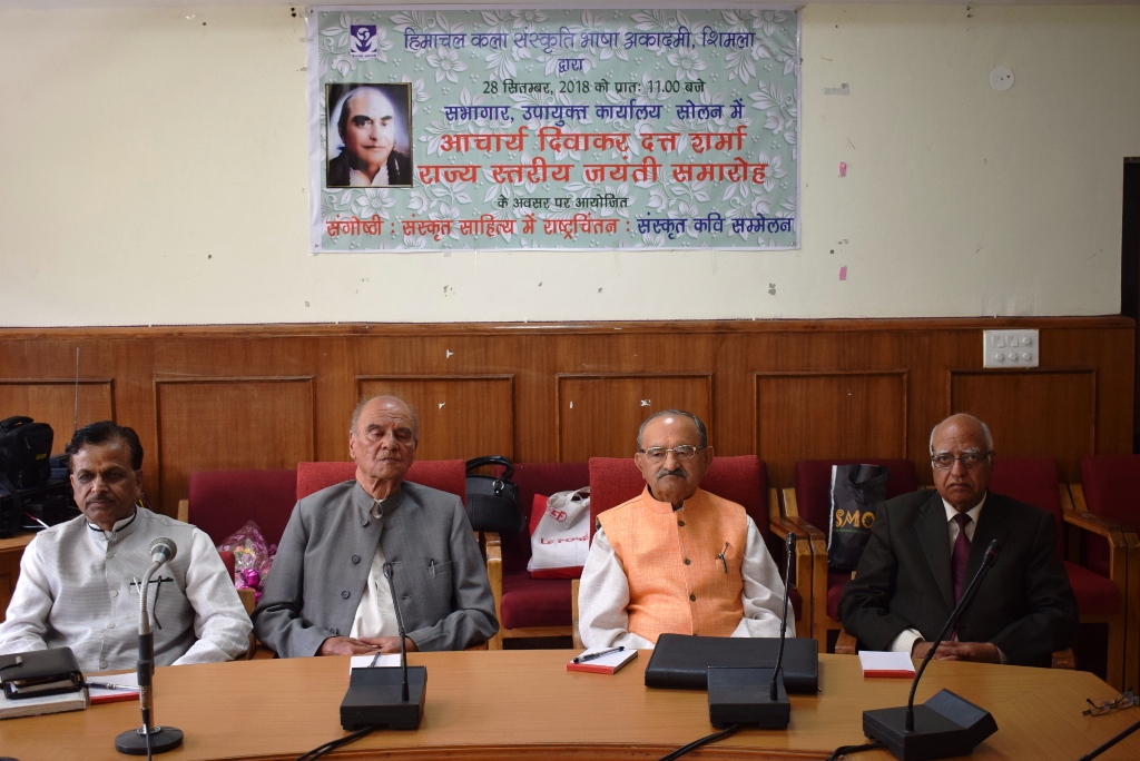 हिमाचल कला संस्कृति भाषा अकादमी, शिमला द्वारा आज उपायुक्त कार्यालय सोलन के सभागर में आचार्य दिवाकर दत्त शर्मा की जयंती पर राज्य स्तरीय समारोह आयोजित किया गया। समारोह की अध्यक्षता संस्कृत भारती के प्रान्त संगठन मंत्री नरेंद्र ने की।