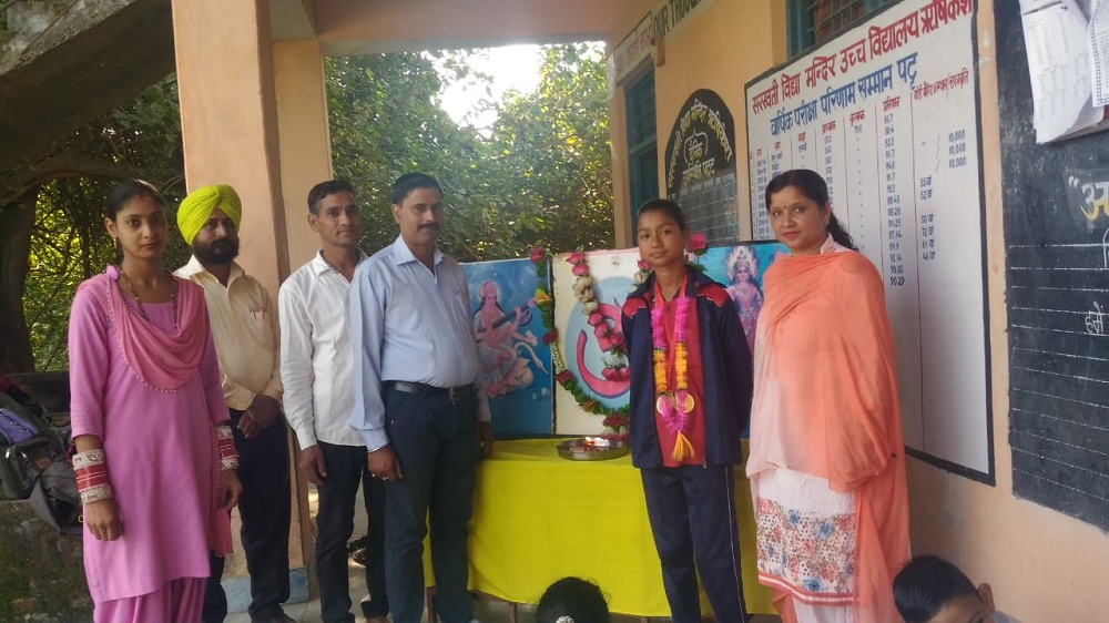 सरस्वती विद्या मंदिर उच्च विद्यालय ऋषिकेश की आरती ने उत्तर क्षेत्र एथलेटिक्स खेल प्रतियोगिता में जीते दो स्वर्ण पदक। पंजाब प्रांत के नाभा में आयोजित 21 वी उत्तर क्षेत्रीय एथलेटिक्स प्रतियोगिता में हिमाचल प्रांत से सरस्वती विद्या मंदिर उच्च विद्यालय ऋषिकेश बिलासपुर की छात्रा आरती ने लंबी कूद ऊंची कूद में भाग लिया । इस छात्रा ने लंबी गोदारों की गोद में प्रथम स्थान प्राप्त करके दो स्वर्ण पदक हासिल की है। छात्रा अखिल विद्या भारती लखनऊ में उत्तर क्षेत्र का प्रतिनिधित्व करेगी । छात्रा के विद्यालय आने पर मुख्याध्यापक, प्रबंधन समिति, अध्यापक ,अध्यापिका ने भव्य स्वागत किया इसके साथ ही सभी ने आरती को शुभकामनाएं दी।