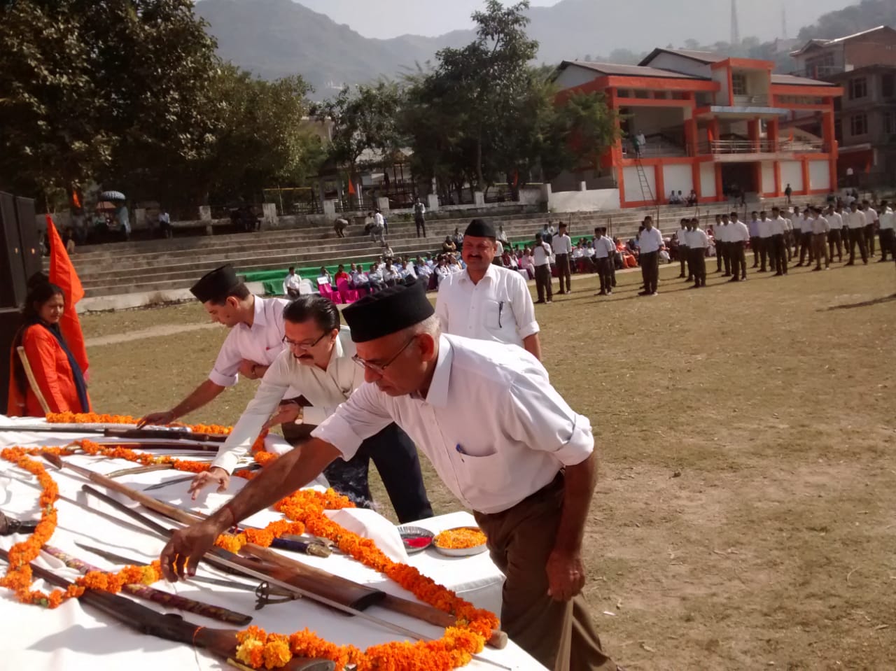 बिलासपुर में शुक्रवार को विजयदशमी के अवसर राष्ट्रीय स्वयंसेवक संघ ने अपना 94वां स्थापना दिवस एवं शस्त्र पूजा कार्यक्रम का आयोजन किया। इस अवसर पर कार्यक्रम की अध्यक्षता शिशु रोग विशेषज्ञ डा. सतीश शर्मा ने की। उन्होंने कार्यक्रम की अध्यक्षता करते हुए कहा कि आज आरएसएस विश्व का सबसे बड़ा स्वयंसेवी संगठन बन चुका है । जिसके पीछे स्वयंसेवकों का त्याग व बलिदान जुड़ा है। उन्होंने राष्ट्रीय स्वयंसेवक संघ के इतिहास पर प्रकाश डालते हुए कहा कि राष्ट्रीय स्वयंसेवक संघ के स्वयं सेवकों को समाज सेवा से जुडऩा चाहिए। व समाज को जागरूक करने में आगे आएं। राष्ट्रीय स्वयं सेवक संघ के प्रान्त कार्यवाह किस्मत कुमार कार्यक्रम के मुख्य वक्ता रहे। अपने संबोधन में आरएसएस के प्रांत कार्यवाह किस्मत कुमार ने कहा कि संघ व्यक्तियों में श्रेष्ठ गुणों का निर्माण करता है क्योंकि श्रेष्ठ नागरिक ही श्रेष्ठ समाज का निर्माण करते हैं।
