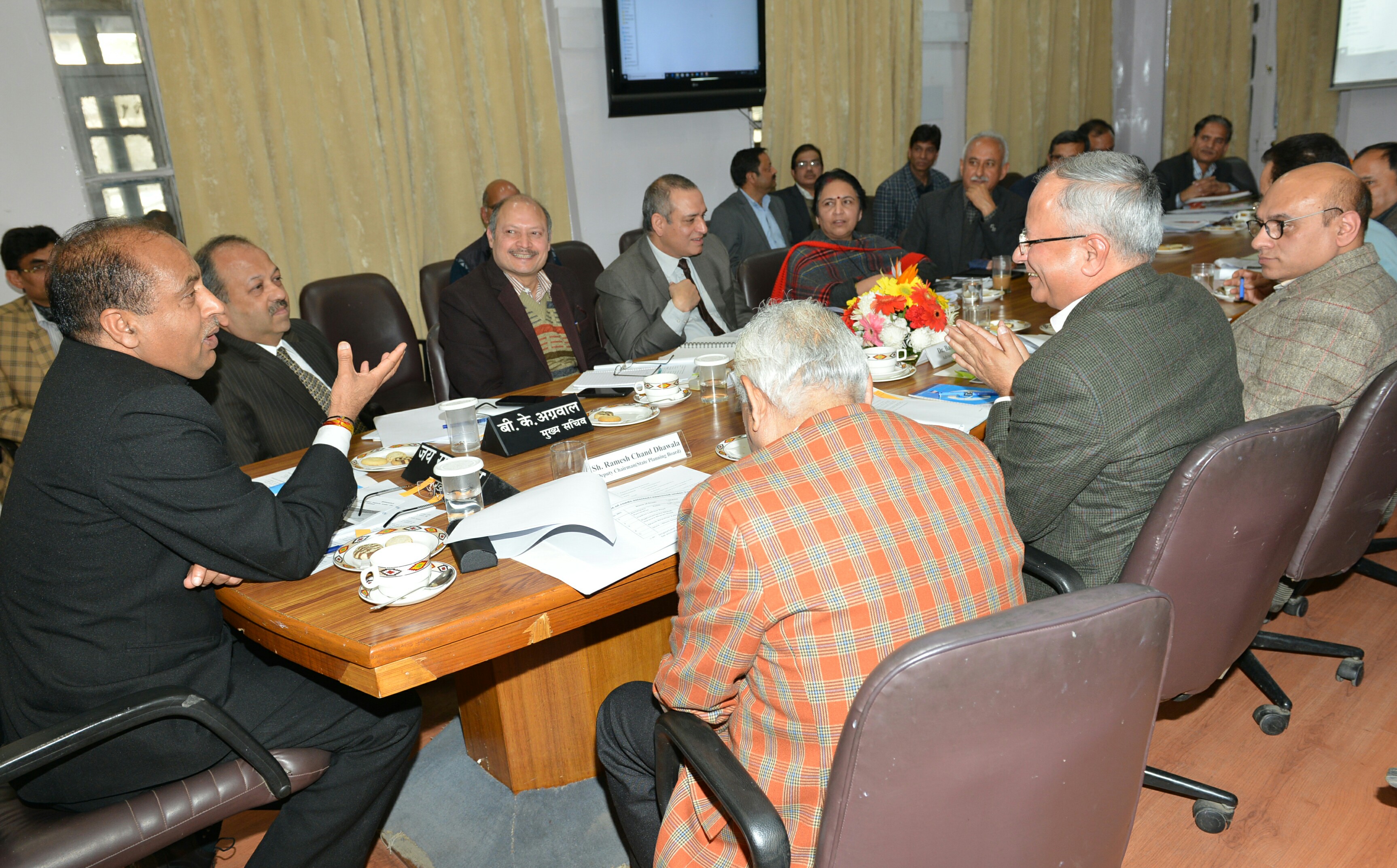 राज्य योजना बोर्ड के उपाध्यक्ष रमेश धवाला, अतिरिक्त मुख्य सचिव तथा मुख्यमंत्री के प्रधान सचिव डॉ. श्रीकान्त बाल्दी, अतिरिक्त मुख्य सचिव मनीषा नन्दा, अनिल खाची, मनोज कुमार तथा आर.डी. धीमान, प्रधान सचिव प्रबोध सक्सेना, ओंकार चन्द शर्मा, मुख्यमंत्री के अतिरिक्त प्रधान सचिव संजय कुण्डू, सचिव देवेश कुमार और दिनेश मल्होत्रा, योजना सलाहकार बासु सूद व अन्य वरिष्ठ अधिकारी इस अवसर पर उपस्थित थे।