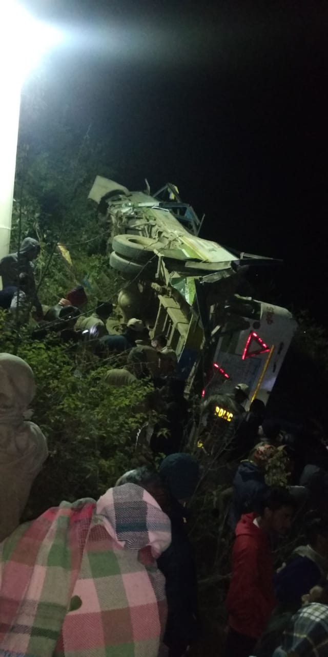 हिमाचल पथ परिवहन निगम की एक बस बुधवार देर शाम दुर्घटनाग्रस्त हो गई जिसमें दो व्यक्तियों की मौत हो गई जबकि 25 घायल हुए हैं यह नालागढ़ डिपू की यह बस जय नगर रूट पर जा रही थी । घायलों को स्थानीय लोगों की मदद से क्षेत्र अस्पताल बिलासपुर में भर्ती करवाया गया है । गंभीर रूप से घायल तीन व्यक्तियों को पीजीआई चंडीगढ़ रेफर कर दिया गया है। बताया जाता है कि यह बस जैसे ही जामली से 2 किलोमीटर आगे पहुंची कि सड़क से अनियंत्रित होकर गहरी खाई में जा गिरी । बस हादसे में एक महिला ने मौके पर ही दम तोड़ दिया जबकि दूसरे गंभीर रूप से घायल व्यक्ति की मौत क्षेत्रीय अस्पताल में हुई है । हादसे के उपरांत अंधेरा होने के कारण घायलों को सड़क तक पहुंचाने में लोगों को काफी मेहनत करनी पड़ी। घटना की सूचना मिलते ही एसपी अशोक कुमार अपने दलबल सहित घटनास्थल की ओर रवाना हुए। वहां जाकर उन्होंने सारी व्यवस्था को देखा । स्वारघाट से एसडीएम अनिल चौहान भी मौके पर पहुंचे थे । इसके अलावा पुलिस और 108 की टीम भी लोगों के साथ घायलों को बाहर निकालने में मदद करती रही । हादसे के कारणों का पता नहीं चल पाया है । उधर नैना देवी के विधायक रामलाल ठाकुर, सदर के विधायक सुभाष ठाकुर, झंडूता के विधायक जीत राम कटवाल तथा घुमारवीं के विधायक राजेंद्र गर्ग के अलावा हिमाचल प्रदेश भाजपा के मुख्य प्रवक्ता तथा पूर्व विधायक रणधीर शर्मा ने इस दुर्घटना पर गहरा शोक प्रकट किया है। रणधीर शर्मा ने देर रात क्षेत्रीय अस्पताल बिलासपुर जाकर घायलों का कुशल क्षेम पूछा उपायुक्त बिलासपुर विवेक भाटिया ने क्षेत्रीय अस्पताल जाकर व्यवस्थाओं का जायजा लिया और अस्पताल प्रशासन को घायलों की उचित देखभाल करने के निर्देश दिए। केंद्रीय स्वास्थ्य मंत्री जय प्रकाश नड्डा ने भी इस दुर्घटना पर दुख व्यक्त किया है और पीजीआई को हरसंभव सहायता उपलब्ध करवाने के लिए अलर्ट कर दिया है उन्होंने देर रात बिलासपुर में उपायुक्त विवेक भाटिया से बात की और राहत कार्यों के बारे में जानकारी ली