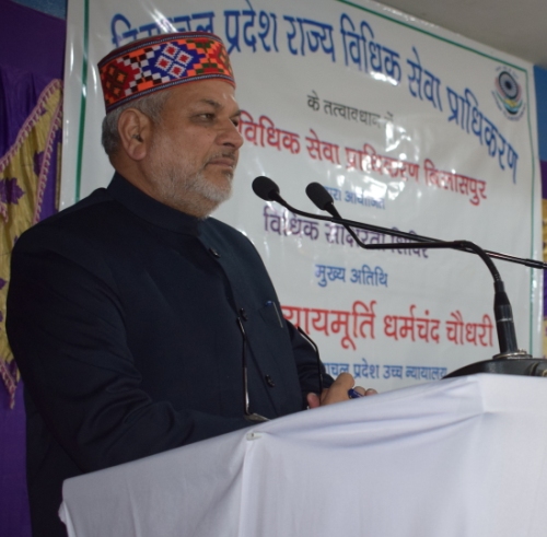 कोई भी नागरिक धन की कमी के कारण न्याय पाने से वंचित न रह जाए इसके लिए विधिक सेवा प्राधिकरण का गठन किया गया है जिसके माध्यम से पात्र व्यक्तियों को निशुल्क विधिक सहायता उपलब्ध करवाने का प्रावधान है। यह जानकारी हिमाचल प्रदेश राज्य विधिक सेवा प्राधिकरण के तत्वानधान में जिला विधिक सेवा प्राधिकरण बिलासपुर द्वारा जिला ट्रक आॅपरेटर परिवहन सहकारी सभी समिति बरमाणा के सभागार में ट्रक मालिको, चालकों, परिचालकों, मजदूरों, पंचायत प्रतिनिधियों व आम जनता के लिए आयोजित विधिक साक्षरता शिविर की अध्यक्षता करते हुए न्यायमूर्ति धर्म चन्द चौधरी, न्यायाधीश, उच्च न्यायालय हि0प्र0 एवं कार्यकारी अध्यक्ष, हि0प्र0 राज्य विधिक सेवा प्राधिकरण शिमला ने दी। उन्होंने कहा कि निशुल्क विधिक सहायता प्राप्त करने के लिए पात्र व्यक्ति सम्बन्धित न्यायालय जानकारी प्राप्त कर सकता है तथा प्रत्येक पंचायत में नियुक्त पैरा लीगल वाॅलेंटियर से सहायता अथवा परामर्श प्राप्त कर सकते है। उन्होंने कहा कि कोई भी पात्र व्यक्ति जो गरीबी, अज्ञानता और अनपढ़ता के कारण अपने अधिकारियों की रक्षा करने में असमर्थ है वे निशुल्क कानूनी सहायता प्राप्त कर सकते है। उन्होंने इस अवसर पर आहवान किया कि वाहन चलाते समय प्रत्येक व्यक्ति का निर्धारित गति सीमा व नियमों का पालन करना नितांत आवश्यक है ताकि दुर्घटनाओं की संभावनाओं को कम किया जा सके।