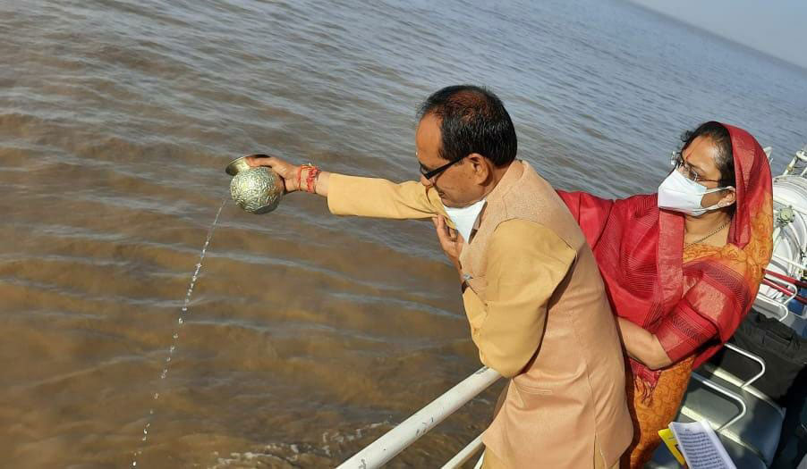Bhopal: मुख्यमंत्री श्री शिवराज सिंह चौहान और उनकी धर्मपत्नी श्रीमती साधना सिंह आज प्रातः गुजरात में नर्मदा और सागर संगम स्थल पहुँचे। उन्होंने भरूच के पास खंभात की खाड़ी में जहाँ नर्मदा जी मिलती हैं, वहाँ पूजा, अर्चना और प्रार्थना की।
