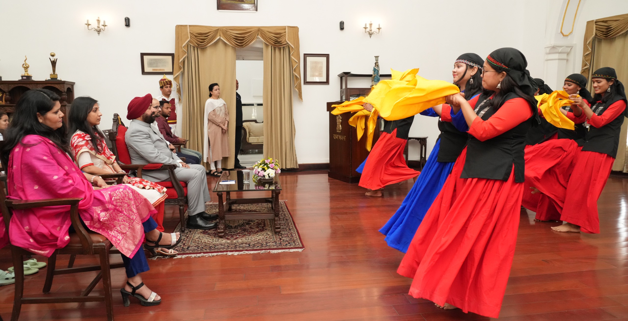 देहरादून,। राजभवन में हिमाचल प्रदेश का स्थापना दिवस मनाया गया। कार्यक्रम में हिमाचल राज्य के देहरादून स्थित संस्थानों में अध्ययनरत छात्र-छात्राएं सहित अन्य लोग उपस्थित रहे। इस दौरान छात्र-छात्राओं ने पारंपरिक वेशभूषा में मनमोहक सांस्कृतिक कार्यक्रम प्रस्तुत किए जिसमें हिमाचल की समृद्ध लोक संस्कृति की झलक देखने को मिली।