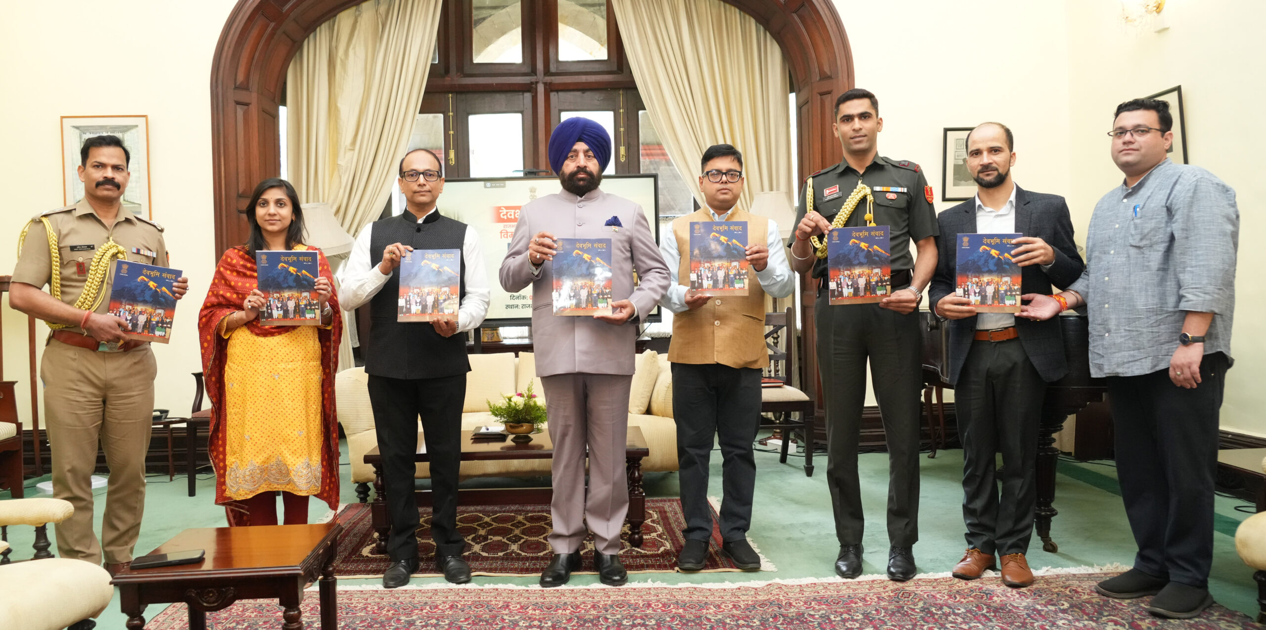 देहरादून,। राज्यपाल लेफ्टिनेंट जनरल गुरमीत सिंह (से नि) ने राजभवन में ‘‘देवभूमि संवाद’’ पत्रिका का विमोचन किया। राजभवन उत्तराखण्ड की पत्रिका देवभूमि संवाद हर छह माह में प्रकाशित की जाती है तथा इसमें राज्यपाल की विभिन्न महत्वपूर्ण गतिविधियाँ, कार्यक्रम, बैठकें, भाषण एवं अन्य औपचारिक कार्यकलापों का व्यापक संकलन किया जाता है। इस अंक का संपादन संयुक्त निदेशक सूचना डॉ. नितिन उपाध्याय द्वारा किया गया है, जबकि सह-संपादन में अर्जुन पटवाल और सहयोग में सूचना अधिकारी अजनेश राणा की प्रमुख भूमिका रही।