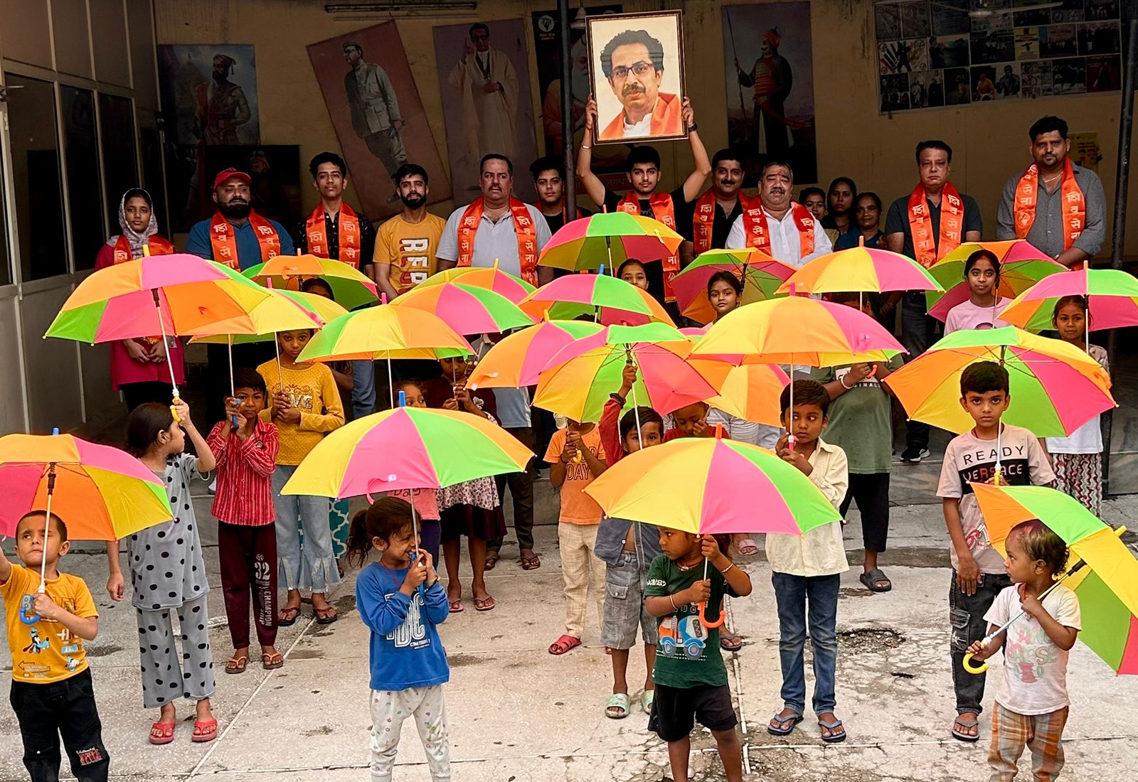 शिव सेना पक्ष प्रमुख का जन्मदिन मनाया, स्कूली बच्चो को छाते वितरित किए