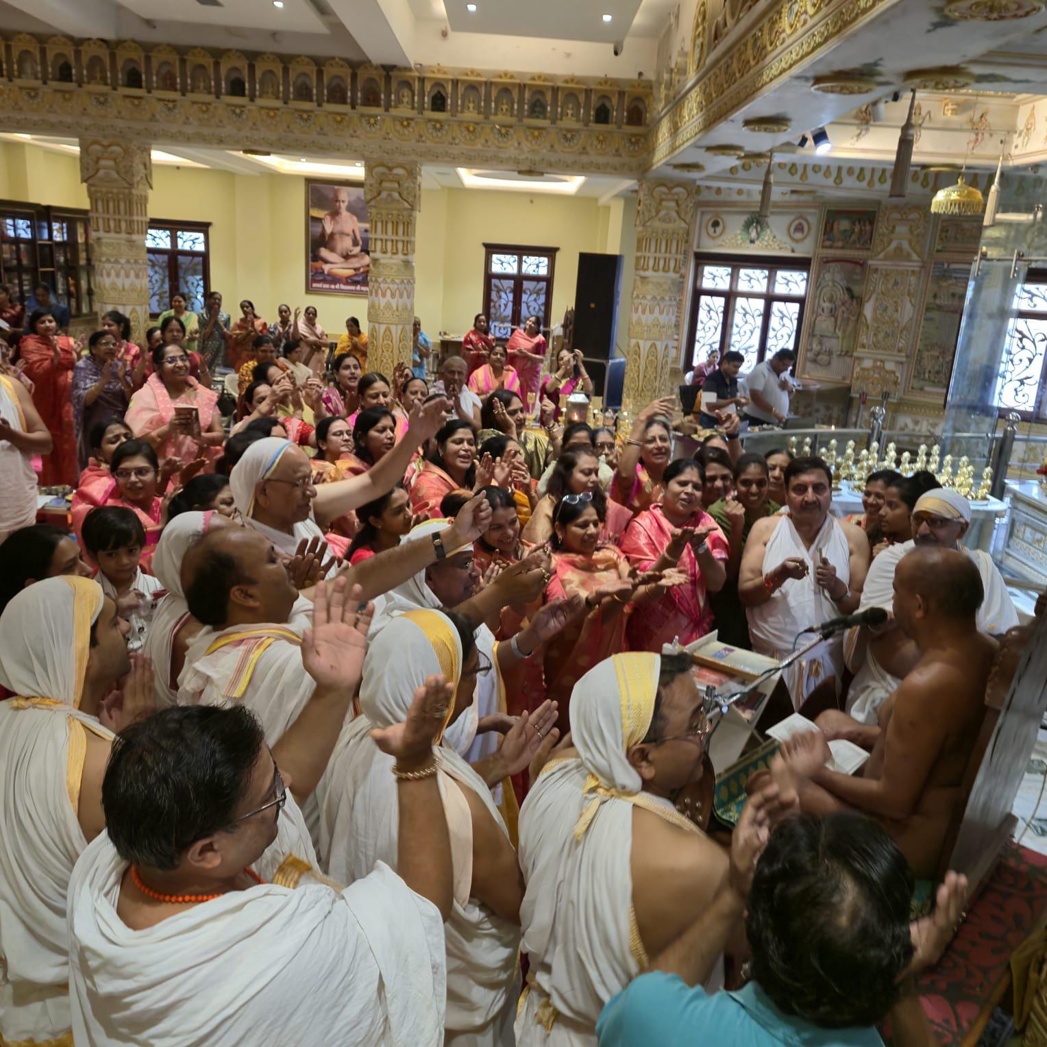 आज के विधान के पुण्यार्जक जिनवाणी जाग्रति मंच रहे। मंच की समर्पित महिलाओं द्वारा पूज्य आचार्य श्री को श्रीफल अर्पित कर 44 कल्याण मंदिर विधान करने का संकल्प लिया गया। साथ ही प्रभु समर्पण समिति द्वारा भी इस विधान का संकल्प विधिवत रूप से लिया गया।