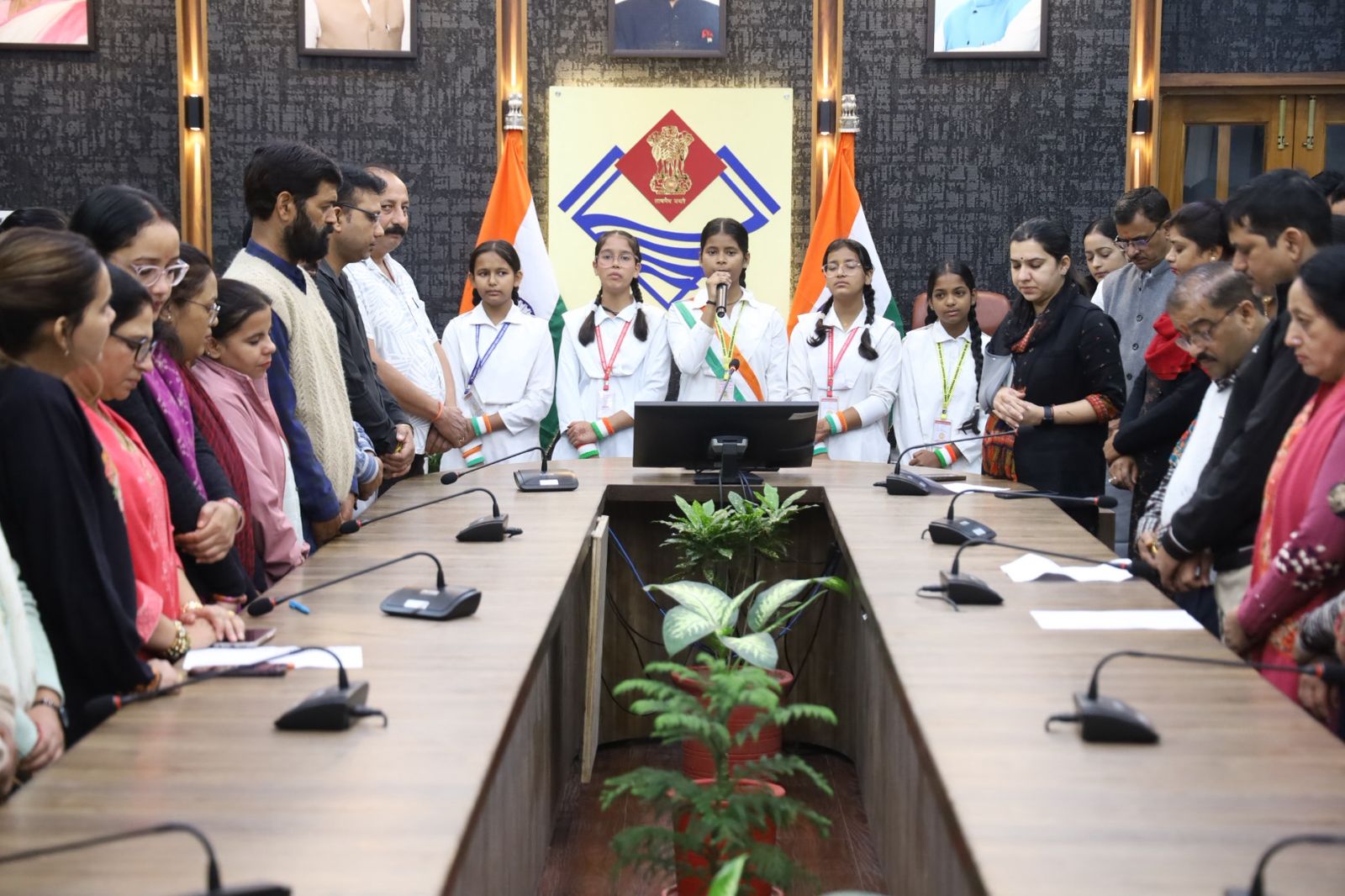 देहरादून,। भारत वर्ष के राष्ट्रगीत ‘‘वंदे मातरम्’’ के 150 वर्ष पूर्ण होने के अवसर जनपद के सभी सरकारी, गैर सरकारी कार्यालयों, शिक्षण संस्थानों एवं सामाजिक संगठनों में प्रातः 10 बजे ‘‘वंदे मातरम्’’ का गायन किया गया। जिलाधिकारी सविन बंसल के दिशा निर्देशन में जिला कार्यालय में उप जिलाधिकारी अपूर्वा सिंह की मौजूदगी में क्लेक्ट्रेट परिसर के समस्त अधिकारियों, कार्मिकों एवं श्री गोर्वधन सरस्वती विद्या मंदिर की छात्राओं की उपस्थिति में वंदे मातरम् का सामूहिक गायन किया गया। इस मौके पर देशभक्ति से ओत-प्रोत वातावरण में अधिकारीगण, कार्मिक, शिक्षक, विद्यार्थी सभी उत्साहपूर्वक शामिल हुए। उप जिलाधिकारी अपूर्वा सिंह ने कहा कि वंदे मातरम् केवल एक गीत नहीं, अपितु राष्ट्र के प्रति सम्मान और एकता का प्रतीक है। उन्होंने कहा कि वर्ष 1875 में बंकिमचंद्र चट्टोपाध्याय द्वारा रचित यह गीत स्वतंत्रता आंदोलन की प्रेरणा का स्रोत रहा है। राष्ट्रगीत के 150 वर्ष पूर्ण होने पर सभी सरकारी, गैर सरकारी कार्यालयों, शिक्षण संस्थानों में वंदे मातरम् का गायन किया जा रहा है। क्लेक्ट्रेट परिसर में ‘‘भारत माता की जय’’ के उद्घोष के साथ कार्यक्रम का समापन किया गया। इस मौके पर क्लेक्ट्रेट परिसर के समस्त अधिकारी एवं कार्मिक मौजूद थे।