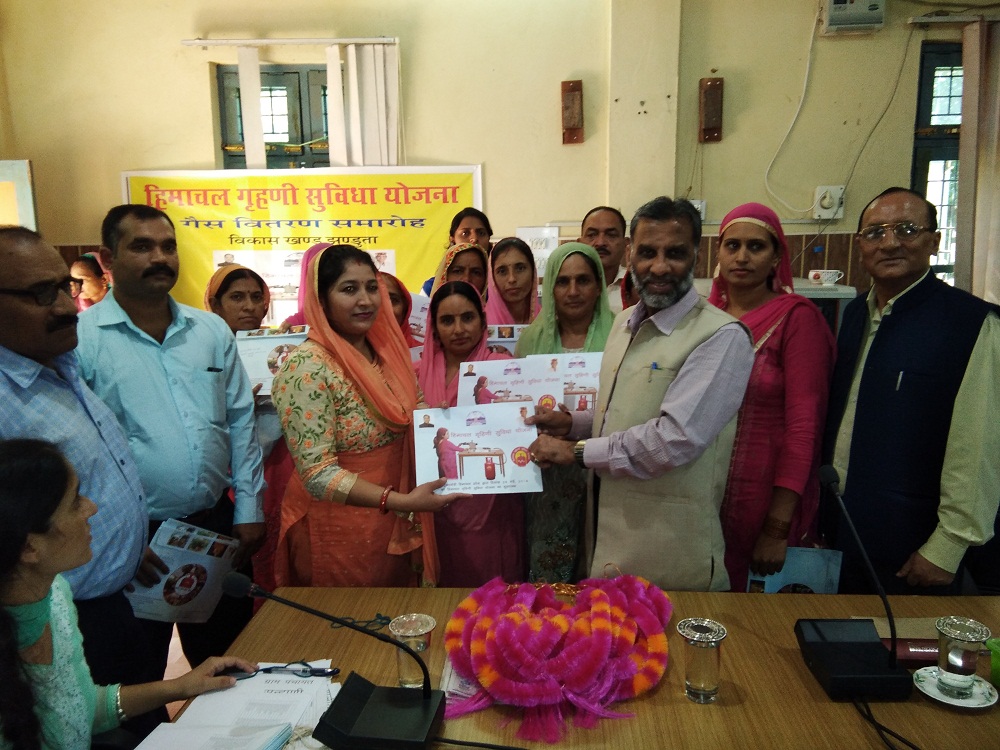 बिलासपुर 25 सितम्बर:- प्रधानमंत्री उज्जवला योजना से वंचित परिवारों के लिए प्रदेश सरकार द्वारा गृहिणी सुविधा योजना आरंभ की गई है। गृहिणी सुविधा योजना के तहत उज्जवला योजना से वंचित रहे परिवारों को निशुल्क गैस कुनेक्शन व चुल्हे प्रदान किए जा रहे है। यह बात झंडूता विधानसभा क्षेत्र के विधायक जीत राम कटवाल ने विकास खण्ड झंडूता के सभागार में आयोजित कार्यक्रम में जनसभा को सम्बोधित करते हुए कही। उन्होंने कहा कि गृहिणी सुविधा योजना के तहत विधासभा क्षेत्र में 800 गैस कुनेक्शन स्वीकृत किए गए है। इस अवसर पर उन्होंने आठ पंचायतों समोह, झंडूता, सुन्हाणी, गालियां, हीरापुर, गेहड़वी, बरठीं, बलघाड़ के 115 पात्र परिवारों को गैस कुनेक्शन वितरित किए।