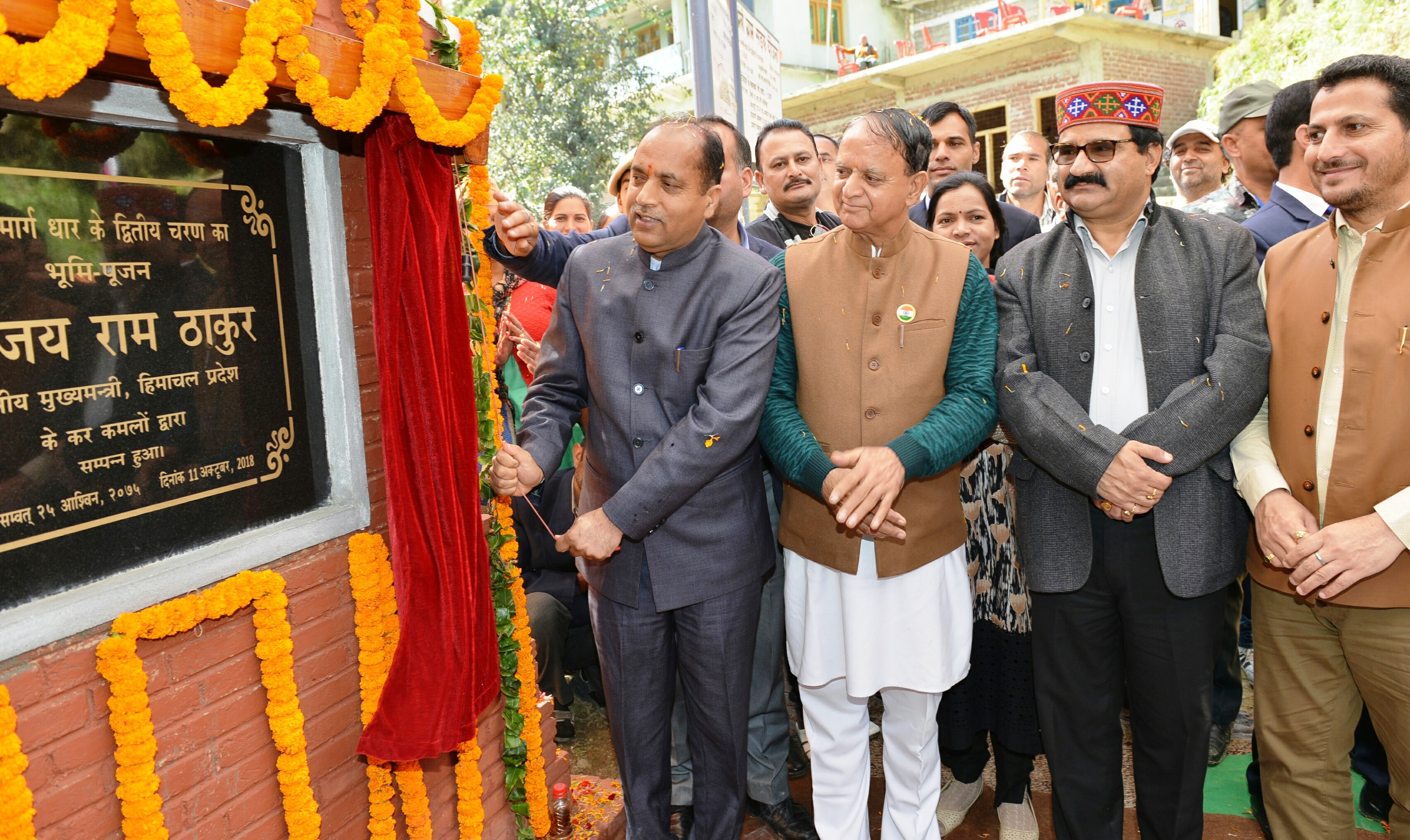 इससे पूर्व ग्राम पंचायत धार-जरोल में मुख्यमंत्री ने जुघंड सड़क (चरण-दो) के स्तरोन्नयन व सुधार, ग्राम पंचायत जरोल के ही धार सम्पर्क मार्ग के द्वितीय चरण के सुधार तथा कुठाह-तुंगाधार सड़क सुधार व उन्नयन (चरण-एक) के निर्माण पर क्रमशः 345.45 लाख, 117.67 लाख, 106.37 लाख तथा286.61 लाख रुपये की लागत आएगी, का भी भूमि पूजन किया। मुख्यमंत्री ने जंजैहली से लम्बाथाच के लिए 146.05 लाख रुपये की लागत से निर्मित होने वाली सिंचाई योजना की जंजैहली में आधारशिला रखी। उन्होंने जंजैहली में नवसृजित लोक निर्माण विभाग मण्डल सिराज का भी लोकार्पण के अतिरिक्त 230.66 लाख रुपये की लागत से निर्मित होने वाले लोक निर्माण विभाग के कार्यालय भवन की भी आधारशिला रखी। उन्होंने बुलाह में जैव विविधता पार्क की आधारशिला रखी। उन्होंने वन्य प्राणी प्रस्तुतीकरण केन्द्र शिकारी देवी वन्य प्राणी अभ्यारण्य बुलाह में तथा राजकीय वरिष्ठ माध्यमिक पाठशाला सांगलवाला के स्कूल भवन की आधारशिला रखी, जिसपर क्रमशः 88 लाख रुपये, 1.5 करोड़ तथा 85.77 लाख रुपये की राशि व्यय की जाएगी। मुख्यमंत्री ने जंजैहली क्षेत्र की विभिन्न पेयजल आपूर्ति योजनाओं के संवर्द्धन की डीमकटारू, सिंचाई एवं जन स्वास्थ्य निरीक्षण कुटीर, खानुखली में पर्यटन सांस्कृतिक केन्द्र की डीमकटारू में आधारशिला रखी, जिस पर क्रमशः 7.78 करोड़, 1.75 करोड़ तथा 25.18 करोड़ रुपये व्यय किए जाएंगे।