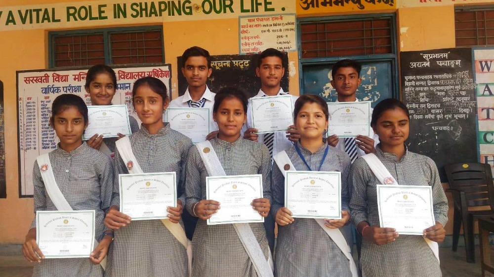 सरस्वती विद्या मंदिर उच्च विद्यालय ऋषिकेश में पढ़ रहे कक्षा दसवीं के 19 छात्रों में से 16 छात्रों ने हिमाचल प्रदेश स्कूल शिक्षा बोर्ड से मेरिट प्रमाण पत्र प्राप्त करके विद्यालय का नाम रोशन किया है। यह जानकारी देते हुए विद्यालय के प्रधानाचार्य सुभाष चंद भारद्वाज ने बताया कि स्कूल में आयोजित एक सादे समारोह में बच्चों को यह मेरिट प्रमाण पत्र दिए गए। उन्होंने कहा कि विद्यालय प्रबंध समिति व विद्यालय के अध्यापकों ने इस उपलब्धि के लिए समस्त अध्यापक वर्ग, अध्यापकों एवं छात्रों को बधाई दी वहीं स्कूल प्रबंध समिति ने अभिभावकों को भी उपलब्धि पर बधाई दी है । जिन छात्र छात्राओं ने मेरिट में स्थान प्राप्त किया है उनके नाम हैं अक्षिता, नाजिया ,प्रिया, प्रियांशु, दीक्षा चौधरी ,तमन्ना धीमान ,साहिल चौधरी, अंचल शर्मा, प्रिया शर्मा, कोमल शर्मा, शिवांशु शर्मा, कार्तिक शर्मा ,प्रिया चौधरी, श्रेया शर्मा, प्रवीण पवार तथा आभूषण।