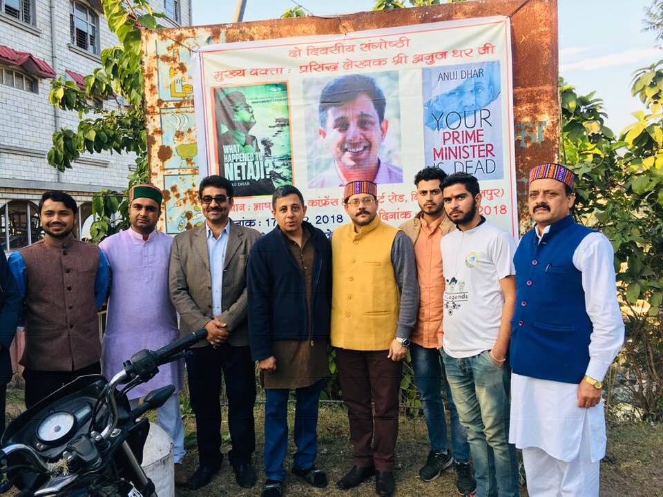 बिलासपुर भाषा एवं संस्कृति विभाग के सभागार में दो दिनों तक चली संगोष्ठी में अनुज धर ने पहले दिन लाल बहादुर शास्त्री की मौत के रहस्यों से पर्दा उठाया और पावर प्वाइंट प्रेजेंटेशन के माध्यम से समझाया कि ताशकंद में जो भी हुआ उसके पीछे क्या राज रहा। दूसरे दिन उन्होंने नेता जी सुभाष चंद्र बोस के बारे में लगातार तीन घंटे व्याख्यान दिया साथ में पावर प्रेजेटेशन भी दी। पहले दिन सदर के विधायक सुभाष ठाकुर मुख्य अतिथि रहे तो दूसरे दिन कामधेनु हितकारी मंच के प्रधान नानक राम जी ने मुख्य अतिथि की भूमिका निभाई। विश्व प्रसिद्ध लेखक अनुज धर को बिलासपुर लाने में बिलासपुर के बंदला के युवा डा. महेंद्र व उनकी टीम ने अहम भूमिका निभाई। सुभाष चंद्र बोस की मौत से जुड़े रहस्यों पर काम कर रहे लेखक अनुज धर ने नेता जी की मौत के रहस्य से पर्दा उठाया।