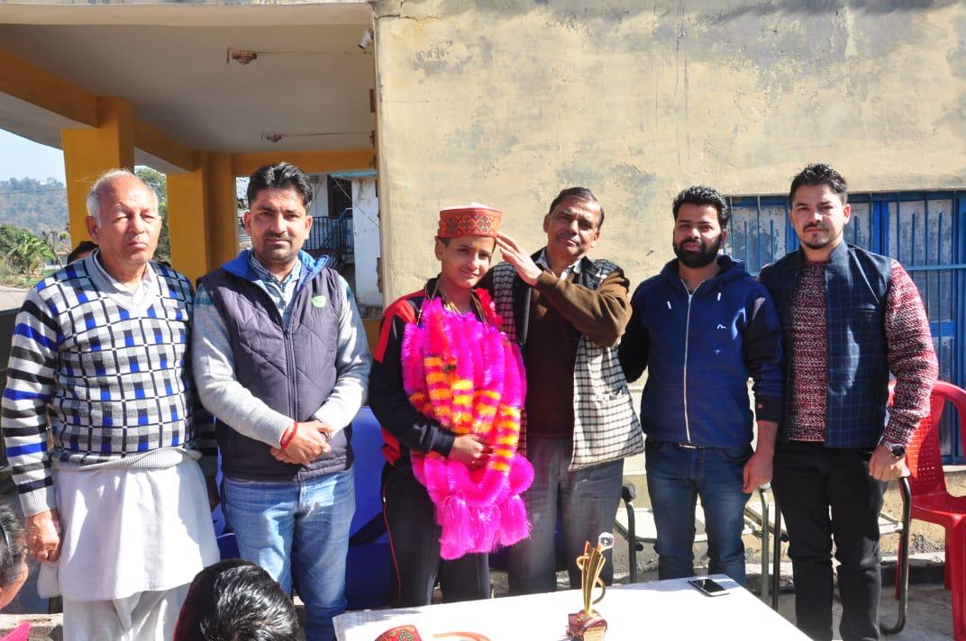 ग्राम पंचायत चांदपुर में रविवार को ग्राम पंचायतए एवं ठाकुर रेसिं्लग अकादमी की ओर से एक साधारण सम्मान समारोह का आयोजन किया गया। जिसमें कुश्ती में उभरते हुए खिलाड़ी शाश्वत वशिष्ठ को खेल गांव रांची में सीबीईएसई द्वारा आयोजित राष्ट्रीय प्रतियोगिता में कांस्य पदक हासिल करने पर सम्मानित किया गया। इस कार्यक्रम की अध्यक्षता ठाकुर रेसिं्लग अकादमी के चैयरमैन राजेंद्र वर्मा ने की। जबकि ग्राम पंचायत प्रधान अर्पण संत गौतम ने मुख्यातिथि के रूप में शिरकत की। इस अवसर पर उन्होंने शाश्वत वशिष्ठ को टोपी एवं स्मृति चिन्ह प्रदान कर सम्मानित किया। तथा कहा कि शाश्वत वशिष्ठ ने खेल गांव रांची में सीबीईएसई द्वारा आयोजित राष्ट्रीय स्तर की प्रतियोगिता में कांस्य पदक जीत कर क्षेत्र एवं जिले का नाम पूरे प्रदेश का नाम रोशन किया है। उन्होंने इस सफलता के लिए अकादमी के प्रयासों की भी सराहना की जो कुश्ती की नई पौध तैयार करने में अहम भूमिका निभा रही है। इस अवसर पर वार्ड सदस्य श्याम लाल वशिष्ठ, तृप्ता देवी, नीलम, सुरेंद्र पाल, अकादमी के उप प्रधान शिरीष डोगरा, कोच विवेक ठाकुर, सेवानिवृत एसडीओ रमण वशिष्ठ व सुरेश शर्मा, डा. सत्य रत्न गौतम, पूर्व प्रधान कृष्ण लाल ठाकुर, सेवानिवृत सूबेदार मेजर रमेश चंद वशिष्ठ सहित अन्य गणमान्य व्यक्ति उपस्थित थे।