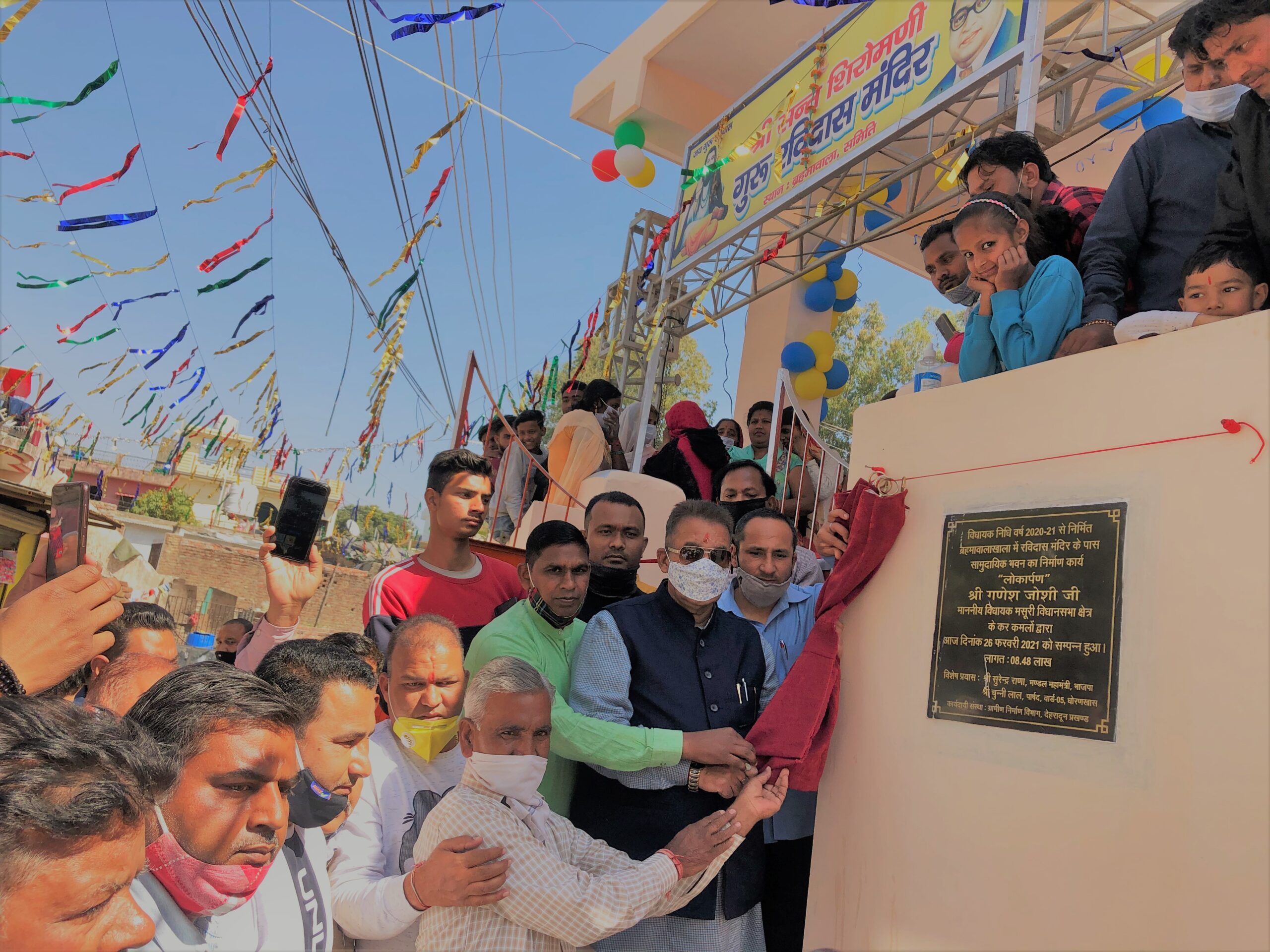 देहरादून: वार्ड 05 धोरणखास के ब्रहमावाला खाला पहुंचे मसूरी विधायक गणेश जोशी ने संत शिरोमणी रविदास मंदिर में विधायक निधि की रुपये 08.50 लाख की धनराशि से निर्मित सामुदायिक भवन लोकार्पित किया। अपने सम्बोधन में विधायक जोशी ने कहा कि ब्रहमावालाखाला का विकास केवल भारतीय जनता पार्टी की सरकार ने किया है। उन्होंने कहा कि चुनाव आने वाले हैं और पांच वर्ष में एक बार दिखने वाले ये-ये लोग जनता के बीच पहुंचने लग गये हैं। उन्होंने स्थानीय लोगों को विश्वास दिलाया कि वर्ष 2022 में प्रदेश में पुनः भाजपा की सरकार आ रही है और भाजपा सबका साथ, सबका विकास और सबका विश्वास के साथ कार्य करती है। क्षेत्रवासियों की मांग पर विधायक जोशी ने कहा कि जल्द ही ब्रहमावालाखाला में झूलती हुई विद्युत तारों को बंच केबल के माध्यम से एकत्रित किया जाऐगा ताकि विद्युत हानि से बचा जा सके। उन्होंने अपर ब्रहमावालाखाला में सामुदायिक भवन निर्माण की घोषणा भी की।