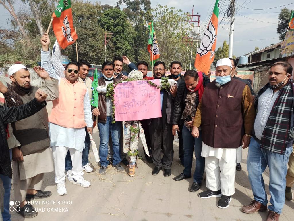 देहरादून:भारतीय जनता पार्टी के अल्पसंख्यक मोर्चा ने प्रधानमंत्री 15 सूत्रीय कार्यक्रम के उपाध्यक्ष (राज्यमंत्री) शादाब शम्स के नेतृत्व में लैंसडॉन चैक देहरादून पर पाकिस्तान का पुतला दहन कार्यक्रम किया गया। पुतला दहन कार्यक्रम में पहुँचे शम्स ने कहा की पाकिस्तान में जिस प्रकार संत परम हंस की समाधि पर पाकिस्तान के सुप्रीम कोर्ट के आदेश के बाद मंदिर निर्माण का कार्य चल रहा था जिसे वहाँ के कट्टरपंथियों द्वारा बाधित कर मंदिर को तोड़ा गया और आग के हवाले किया गया जिससे पाकिस्तान के अल्पसंख्यक समाज के साथ साथ पूरे विश्व का अल्पसंख्यक समाज आहत हैं।
