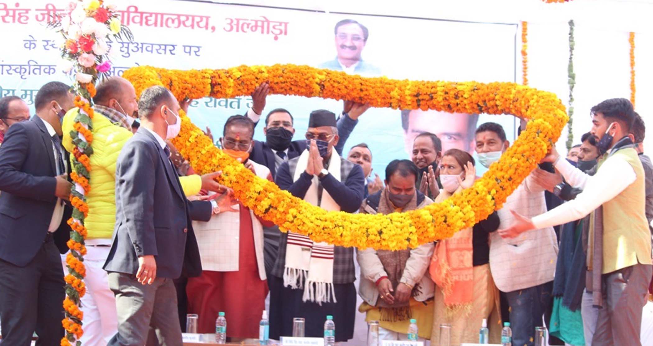 उच्च शिक्षामंत्री डॉ. धन सिंह रावत ने कहा कि बागेश्वर और पिथौरागढ़ महाविद्यालयों को सोबन सिंह जीना विश्वविद्यालय के परिसर का दर्जा दे दिया गया है। उन्होंने कहा कि डिजीलाकर के माध्यम से अब विश्वविद्यालय की सभी डिग्रियॉ आनलाईन की जा रही है। उन्होंने कहा कि कोई भी प्राध्यापक कुमाऊ विश्वविद्यालय के नैनीताल कैम्पस या सोबन सिहं जीना विश्वविद्यालय के अल्मोड़ा, बागेश्वर या पिथौरागढ़ कैम्पस में स्थानान्तरण चाहते है तो उनसे एक माह के भीतर विकल्प प्राप्त करते हुए उनका स्थानान्तरण कर दिया जायेगा। उच्च शिक्षामंत्री ने कहा कि बी0एड0 एवं लॉ संकाय को सोबन सिंह जीना विश्वविद्यालय के अल्मोड़ा में ही रखा जायेगा। विशिष्ट अतिथि के रूप में विधानसभा उपाध्यक्ष माननीय रघुनाथ चैहान ने कहा कि सोबन सिंह जीना विश्वविद्यालय के बनने से यह विश्वविद्यालय शिक्षा के क्षेत्र में मील का पत्थर साबित होगा। उत्तराखंड के विकास में माननीय मुख्यमंत्री जी और शिक्षा के क्षेत्र में धनसिंह रावत का प्रयास स्तुत्य है। उन्होंने इस दौरान कई मांगे मुख्यमंत्री के समक्ष रखी। विशिष्ट अतिथि के रूप में ’महिला कल्याण एवं बाल विकास एवं मत्स्य विकास मंत्री रेखा आर्या ने कहा कि उत्तराखंड राज्य में महिलाओं और बाल विकास के लिए सकारात्मक कार्य किये जा रहे हैं। उत्तराखंड की सरकार विकास के लिए प्रतिबद्ध है। अल्मोड़ा-पिथौरागढ़ संसदीय क्षेत्र के सांसद श्री अजय टम्टा ने अपने संबोधन में कहा कि विकास को लेकर इस सरकार ने कम समय में बेहतर प्रदर्शन किया है। हर क्षेत्र में उत्तराखंड की सरकार कार्य कर रही है। कुलसचिव डॉ बिपिन चंद्र जोशी ने सभी अतिथियों का आभार व्यक्त। कार्यक्रम में ’विश्वविद्यालय के लोगो और वेबसाइट का लोकार्पण भी मुख्यमंत्री द्वारा किया गया।