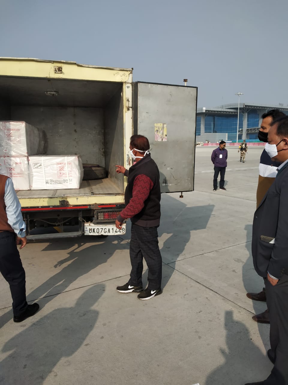 देहरादून: केन्द्र सरकार से उत्तराखण्ड को कोविड-19 के टीकाकरण के लिए कोविशिल्ड वैक्सीन की 92500 डोज उपलब्ध कराई गयी है। यह वैक्सीन बुधवार को देहरादून एयरपोर्ट पर पहुंच गई। 16 जनवरी से शुरू हुए राष्ट्रव्यापी टीकाकरण के तहत कोविड-19 की वैक्सीन की 1 लाख 13 हजार डोज उत्तराखण्ड को दी गई थी। प्रथम चरण में हेल्थवर्करो का सफलतापूर्वक वैक्सीनैशन किया जा रहा है। अब केन्द्रीय स्वास्थ्य एवं परिवार कल्याण मंत्रालय द्वारा उत्तराखण्ड को 92500 वैक्सीन और दी गई है। मुख्यमंत्री त्रिवेन्द्र सिंह रावत ने प्रधानमंत्री नरेन्द्र मोदी, केन्द्रीय स्वास्थ्य मंत्री डाॅ हर्षवर्धन का आभार व्यक्त किया है।