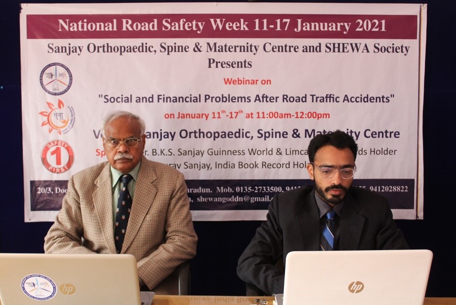 देहरादून:राष्ट्रीय सड़क सुरक्षा सप्ताह (11-17 जनवरी) के अवसर पर संजय ऑर्थोपीडिक स्पाइन एवं मैटरनिटी सेन्टर व सेवा सोसाइटी द्वारा सड़क सुरक्षा से सम्बन्धित बेबीनार का आयोजन किया गया। पिछले 15 सालों से यह सेंटर एवं सेवा सोसाइटी सड़क सुरक्षा के ऊपर जनता को जागरूक कर रहा है। अब तक इस सेंटर के द्वारा दो सौ से अधिक निःशुल्क व्याख्यान दिये जा चुके है।