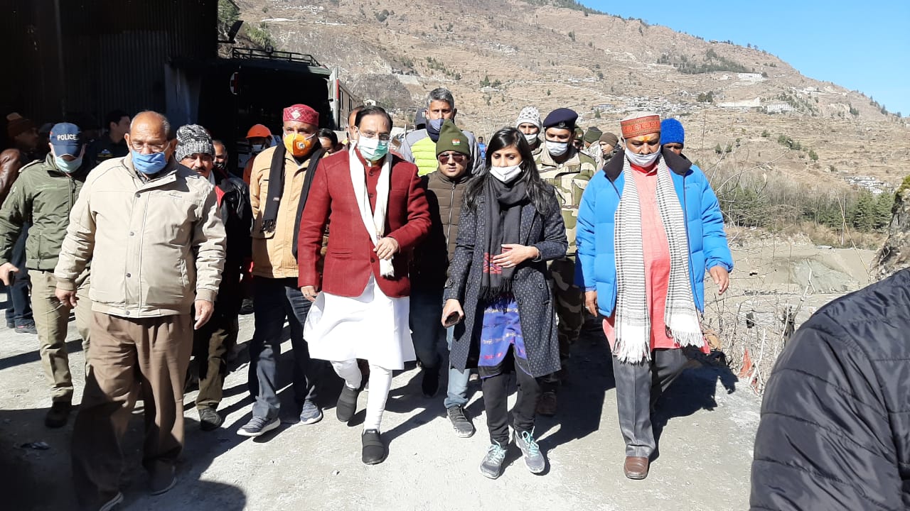 देहरादून:केंद्रीय शिक्षा मंत्री डा. रमेश पोखरियाल निशंक, केंद्रीय ऊर्जा मंत्री आरके सिंह ने तपोवन आदि क्षेत्रों का दौरा कर स्थिति का जायजा लिया और स्थानीय लोगों से बात की। विधायक महेंद्र प्रसाद भट्ट, विधायक सुरेंद्र सिंह नेगी ने भी तपोवन एवं रैणी मे आपदा प्रभावित क्षेत्र का जायजा लिया। चमोली जिले में रविवार को आयी आपदा के दूसरे दिन भी रेस्क्यू आपरेशन पूरे दिनभर जारी रहा।