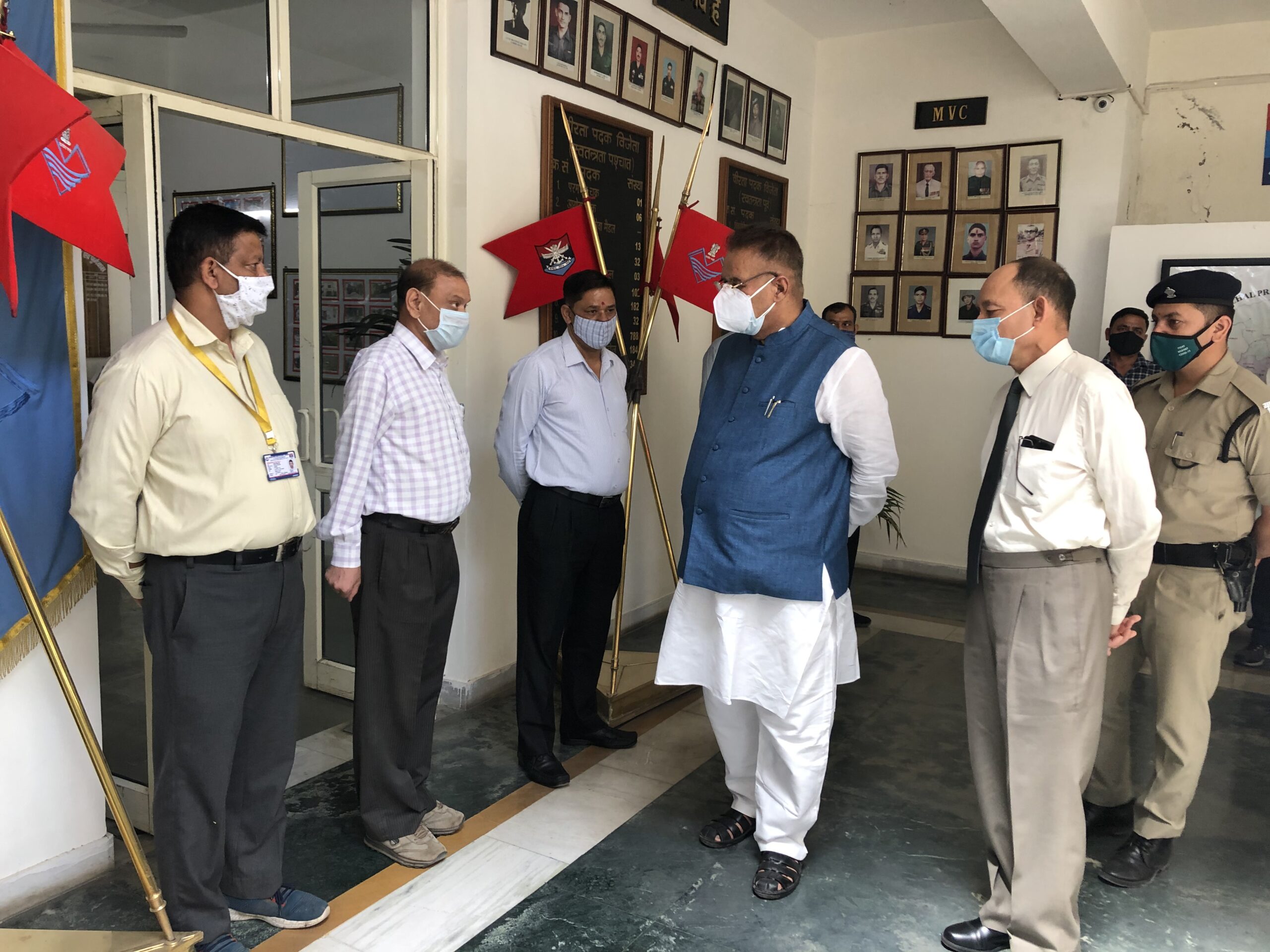 ब्रिगे.के.बी.चन्द (अ.प्रा.) निदेशक सैनिक कल्याण द्वारा मंत्री को पुष्प गुच्छ देकर स्वागत किया गया तथा निदेशालय के समस्त अधिकारियोंध्कर्मचारियों द्वारा कैबिनेट मंत्री का स्वागत किया। इस दौरान कैबिनेट मंत्री प्रत्येक कार्मिक से मिले। कैबिनेट मंत्री द्वारा निदेशालय द्वारा संचालित विभिन्न सैनिक कल्याण गतिविधियां की जानकारी ली तथा राज्य सरकार स्तर से एवं भारत सरकार स्तर से सैनिकों के कल्याण हेतु संचालित योजनाओं की प्रगति की समीक्षा भी की। निदेशक सैनिक कल्याण द्वारा मंत्री जी को सैनिक कल्याण विभाग का अतीत एवं विभाग द्वारा संचालित कल्याणकारी योजनाओं के सम्बन्ध में जानकारी दी गयी। राज्य के सैनिकों के कल्याण हेतु निदेशालय द्वारा संचालित योजनाओं की जानकारी के उपरांत कैबिनेट मंत्री द्वारा निम्नांकित बिन्दुओं पर कार्यवाही हेतु निर्देशित किया। द्वितीय विश्व युद्व के पेंशनरों के अनुदान राशि में वृद्वि किये जाने तथा इनकी वर्तमान अनुदान राशि रू. 8,000 में और संभावित बढ़ोत्तरी के संबंध में प्रस्ताव तैयार किया जाए। एन.डी.ए., आई.एम.ए.ओ.टी.ए. में चयनित सैनिक आश्रित अभ्यार्थियों को वर्तमान में देय प्रत्सोहन राशि रू. 50,000 में वृद्वि किये जाने हेतु प्रस्ताव उपलब्ध कराने के निर्देश दिये गये। सैनिक कल्याण कार्यालयों हेतु शासकीय कार्यों को और ज्यादा मुस्तैदी तथा त्वरितता से किए जाने हेतु आवश्यक वाहनां के क्रय संबंधी प्रस्ताव को तैयार किया जाए।