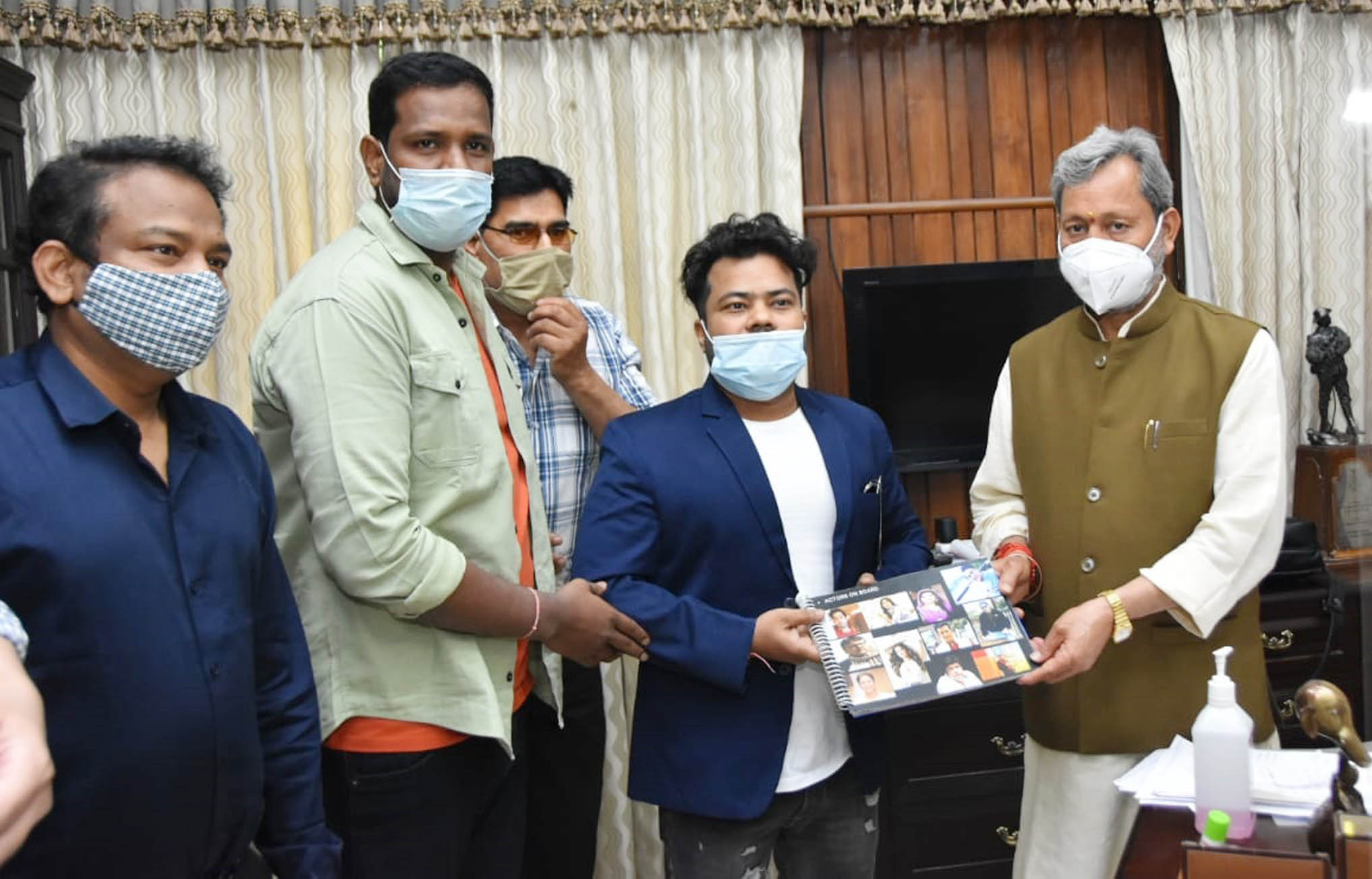 देहरादून: मुख्यमंत्री तीरथ सिह रावत से आज राधिका फिल्म्स के बैनर तले बन रही फिल्म की टीम ने मुलाकात की। उन्होंने मुख्यमंत्री जी को अपनी आने वाली फिल्म बूंदी रायता की शूटिंग लॉचिंग कार्यक्रम में प्रतिभाग करने के लिए आमंत्रित किया। इस मौके पर फिल्म के डाइरेक्टर कमल चंद्रा, प्रोड्यूसर रवि गुप्ता आदि ने फिल्म के बारे में मुख्यमंत्री जी को अवगत कराया। उन्होंने बताया कि फिल्म की शूटिंग उत्तराखंड के देहरादून, मसूरी, ऋषिकेश आदि विभिन्न स्थानों की पर की जाएगी। उन्होंने इस शूटिंग कार्यक्रम में सहयोग की भी अपेक्षा की। इस मौके पर मुख्यमंत्री जी ने कहा कि राज्य में फिल्म निर्माण व शूटिंग की अपार संभावनाएं हैं। सरकार भी इसके लिए प्रोत्साहित करती है। उन्हें भी पूरा सहयोग किया जाएगा। इसके लिए राधिका जी फिल्म्स की पूरी टीम ने मुख्यमंत्री जी का आभार जताया।