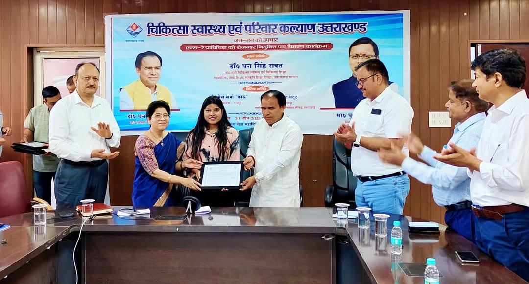 देहरादून,। उत्तराखंड चिकित्सा सेवा चयन बोर्ड के माध्यम से चयनित 34 एक्स-रे तकनीशियनों को प्रदेश के चिकित्सा स्वास्थ्य एवं चिकित्सा शिक्षा मंत्री डॉ. धन सिंह रावत ने नियुक्ति पत्र वितरित किये। नियुक्ति पत्र वितरण कार्यक्रम के अवसर पर डॉ. रावत ने कहा कि एक्स-रे तकनीशियन स्वास्थ्य तंत्र की रीढ़ है। इनकी नियुक्ति से चिकित्सा इकाईयों में मरीजों की बीमारी से सम्बंधित एक्स-रे आसानी से होंगे, जिससे स्वास्थ्य सेवाएं प्रदान करने में डॉक्टरों को भी सहायता मिल सकेगी।