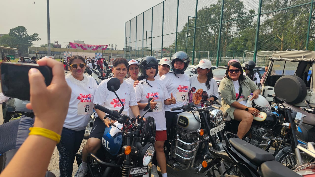 झांसी ओं व्हील्स की वूमेन बाइक रैली में महिलाओं ने दिया वूमेन सेफ्टी का संदेश